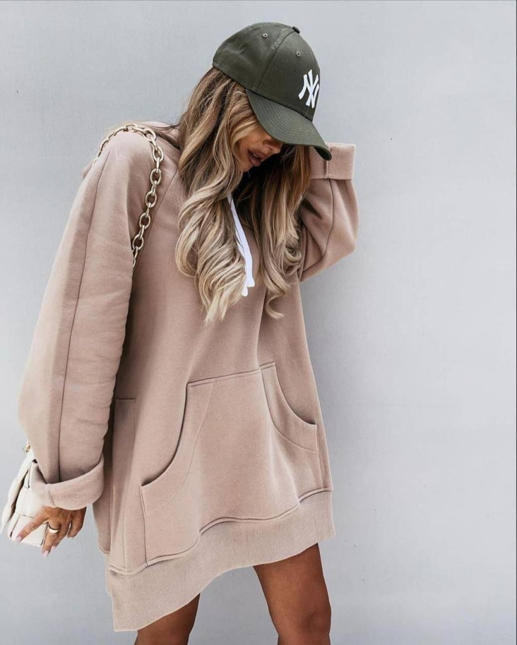 Nude spalvos over size džemperis/suknelė